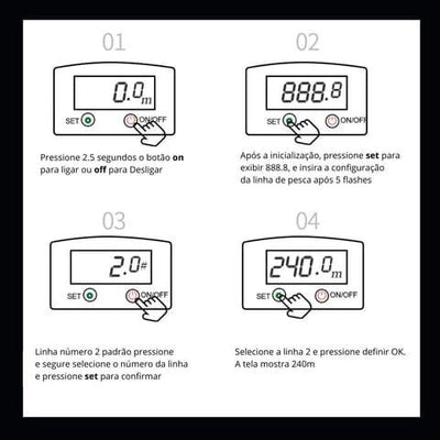 O display digital de alta precisão exibe informações em tempo real, garantindo que você tenha o controle absoluto da linha e profundidade. Com um sistema ultra eficiente, sua pescaria será muito mais estratégica e assertiva.